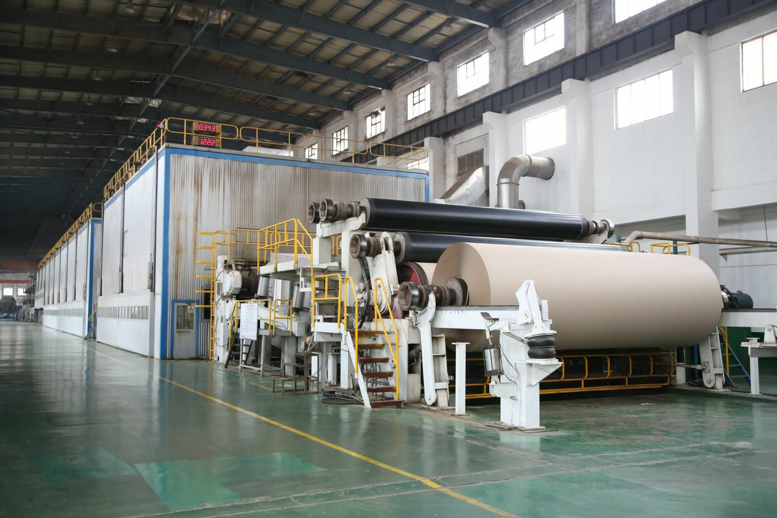 PM5造纸生产线,纸机是美卓(芬兰)制造的先进造纸设备,幅宽6.6米,设计车速1200米/分,目前运行最高车速已达1250米/分。主要生产90-220克的挂面箱板纸,年产量45万吨,带领拼搏在线官网-拼搏(中国)开启了包装纸生产的新纪元。